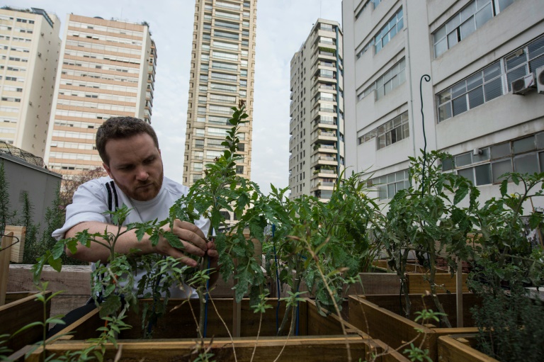 Au milieu des gratte-ciels de Sao Paulo, tomates cerises, citrons et plants de lavande poussent sur le toit du restaurant français Le Bilboquet.