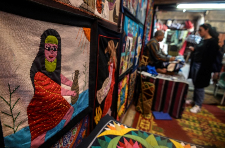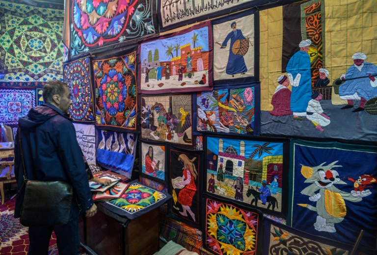 Assis en tailleur dans sa boutique du quartier historique du Caire, l'homme coud à la main des pièces de tissu en coton sur des toiles aux tailles variables, à but ornemental. Les murs recouverts de couleurs chatoyantes et de motifs multiples, sa boutique est l'une des plus attractives de la rue Al-Khayamiya, près de l'antique Bab Zouweila, une porte du XIe siècle, dans l'est de la capitale.