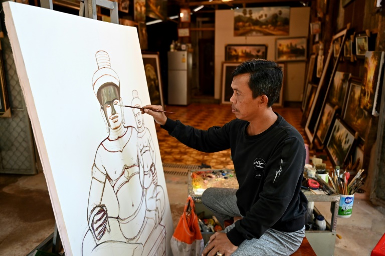 Bientôt, ce peintre devra quitter, à contre-coeur, le bout de terrain qu'il occupe depuis sept ans, comme les 10.000 autres familles qui seront expulsées du site archéologique par le gouvernement cambodgien.