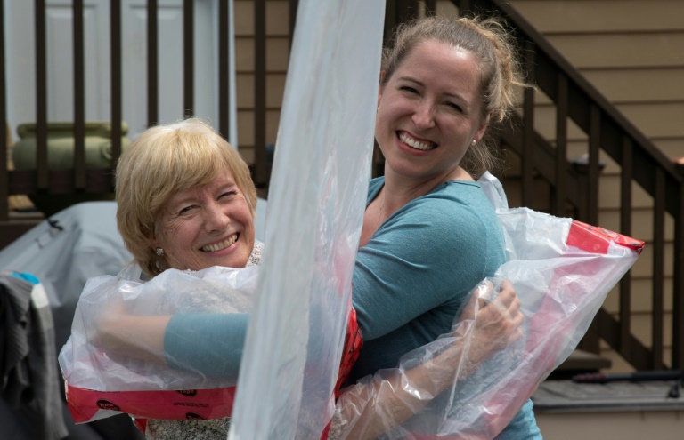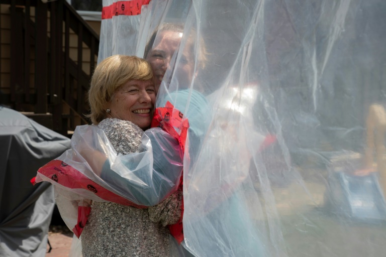 Une bâche en plastique dotée de quatre manches et accrochée à un fil à linge: c'est l'ingénieuse solution développée par une Canadienne pour pouvoir, en toute sécurité, faire un câlin à sa mère en pleine pandémie.