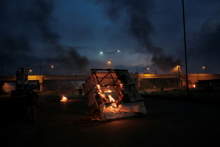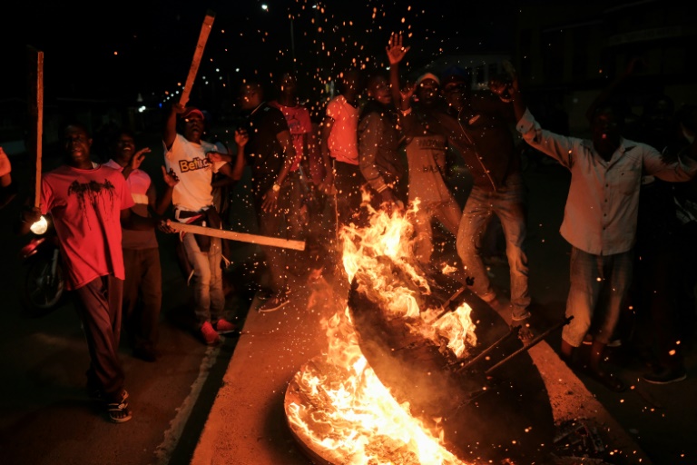 Pourtant en fin d'après-midi, les résultats à peine proclamés et la nuit pas encore tombée, des barricades étaient dressées, des feux allumés, enveloppant l'air de fumées noires. Des jeunes marchaient dans la rue, pierres à la main, criant "Pas de +papa+, pas de paix".