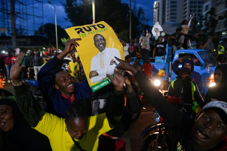 Oubliant le discours de leur leader fraîchement élu, ils se sont mis à chanter et danser, brandissant des portraits de Ruto ou remerciant Dieu, les yeux levés au ciel, tandis que des boda-bodas (motos-taxis) faisaient hurler leur klaxon à travers la ville.