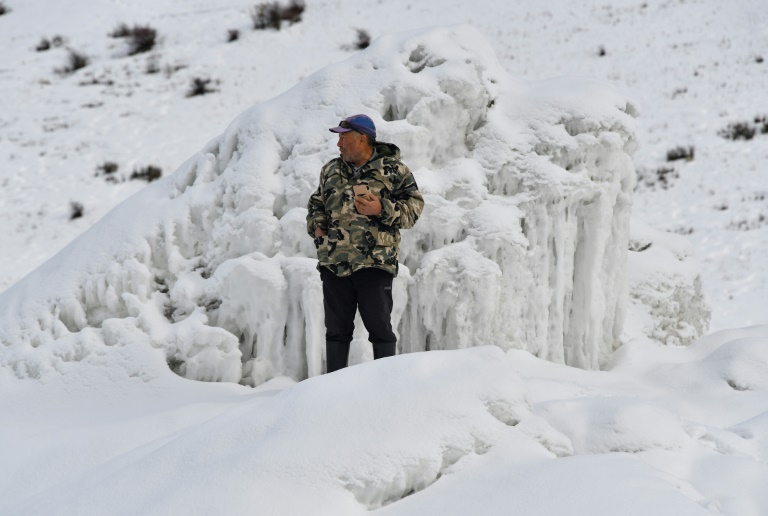 Debout sur une colline artificielle de glace érigée dans le majestueux massif montagneux du Tian-Shan au Kirghizstan, l'éleveur Erkinbek Kaldanov se veut optimiste: "Désormais, nous n'aurons plus de problème avec l'eau", la sécheresse devenant un défi croissant en raison du changement climatique.