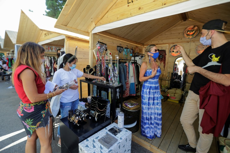 Le long d'une allée, une quarantaine d'exposants et de restaurateurs ont planté leurs kiosques, où les maillots Vilebrequin côtoient les Abaya en soie. Sélim Heleiwa, gérant d'une boutique d'alcools haut de gamme, se réjouit d'une saison "satisfaisante". "La clientèle ici souffre moins de la crise. Ce sont souvent des personnes qui travaillent ou possèdent des comptes bancaires à l'étranger", dit-il.