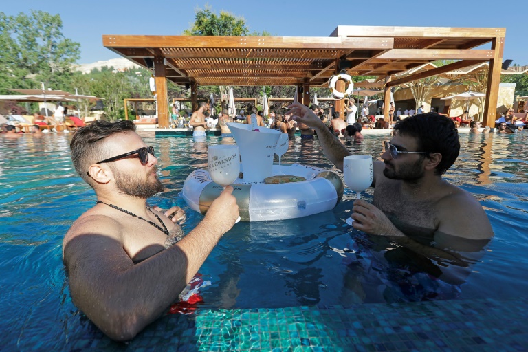 Panamas et lunettes de soleil griffées, seaux à champagne et voitures de luxe: pour les riches Libanais nichés à Faqra faute de pouvoir s'envoler à l'étranger à cause du coronavirus, la crise économique qui ravage leur pays semble bien loin.