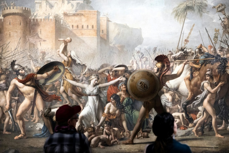 Le peintre reviendra sur le devant de la scène avec les Sabines (1799), immense toile, présentée dans l'exposition, mettant en scène des femmes s'interposant pour mettre fin aux combats.