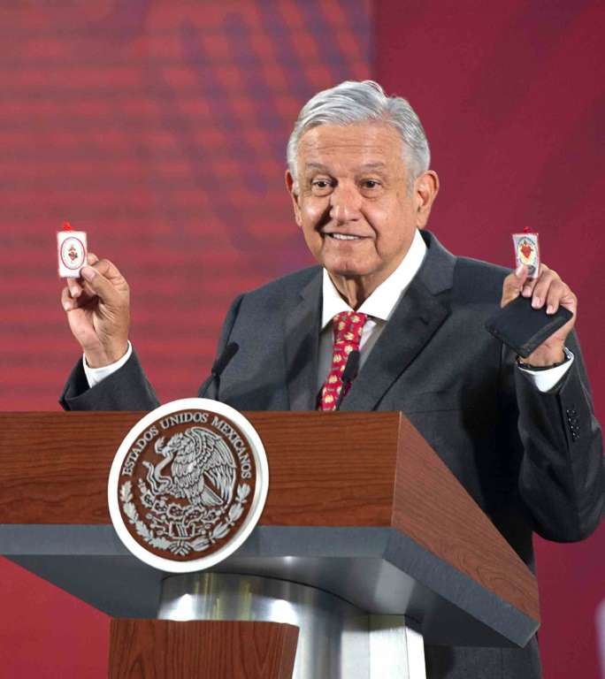 "Ce sont mes gardes du corps", avait fanfaronné AMLO, 66 ans, extrayant de son portefeuille une carte portant l'inscription "Arrêtez le Sacré-Coeur de Jésus", ainsi que plusieurs talismans. Le président de gauche n'en était pas à son coup d'essai. En février 2019, avant qu'il ne s'envole pour l'Etat de Sinaloa --bastion du puissant cartel de la drogue éponyme--, on lui avait demandé s'il n'avait pas peur de voyager sans escorte armée dans cette région. En guise de réponse, il avait montré des images pieuses, un billet d'un dollar et un trèfle à quatre feuilles.