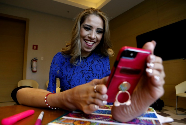 Née sans bras -- ce qui l'a obligée depuis l'enfance à utiliser ses pieds dans tous les gestes de la vie quotidienne -- Adriana Macias, 51 ans, a bien eu recours un temps à des prothèses munies de crochets. Mais elle y a renoncé en raison du poids qui lui provoquait des douleurs dans le dos. C'est donc avec ses pieds qu'elle écrit, se maquille, cuisine, fait le ménage ou habille sa fille de trois ans.