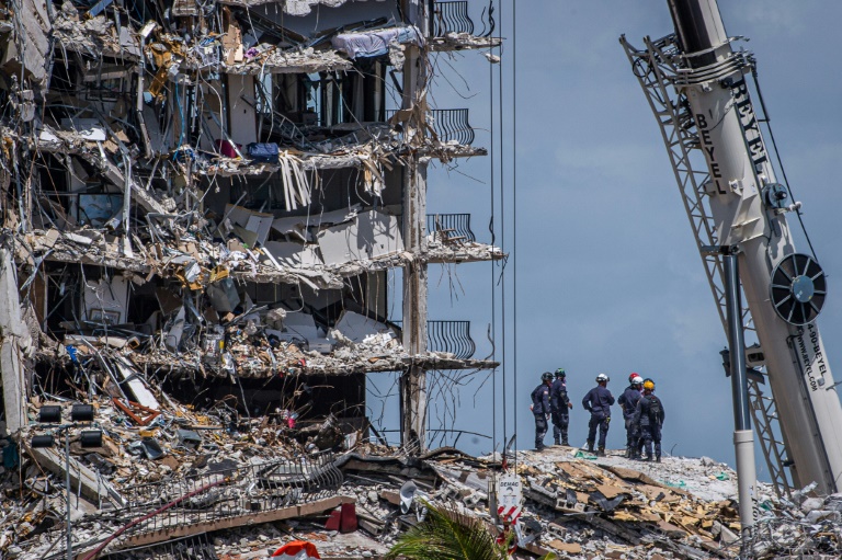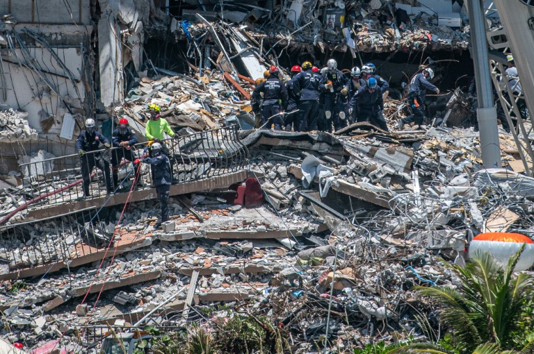 Cinq jours aprÚs l'effondrement d'un immeuble prÚs de Miami, le bilan s'est alourdi à 11 morts lundi, les recherches se poursuivant pour retrouver 150 personnes manquantes dans les décombres tandis que les questions se faisaient de plus en plus pressantes sur les causes de la tragédie.