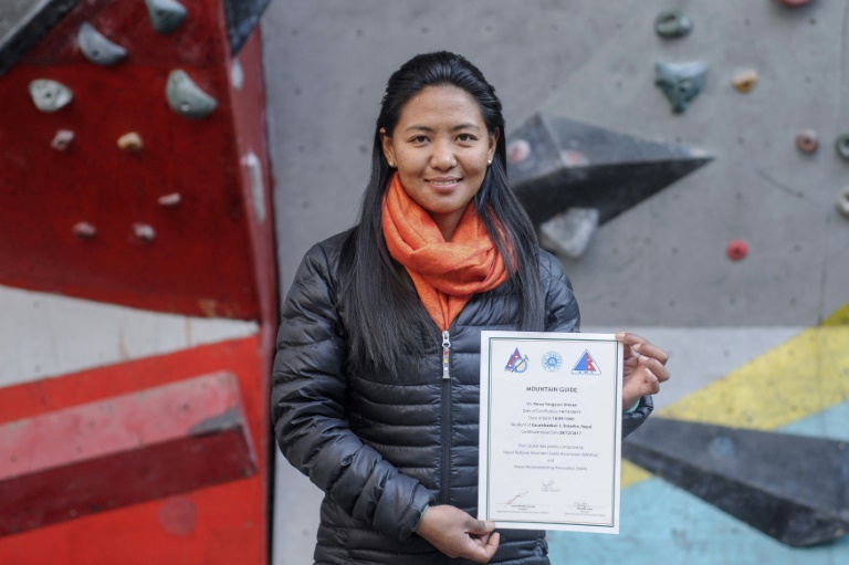 La jeune Sherpa de 27 ans est devenue en décembre la première Népalaise à avoir obtenu la difficile certification de l'Union internationale des associations des guides de montagne, souvent décrite comme l'équivalent d'un "doctorat de l'alpinisme".