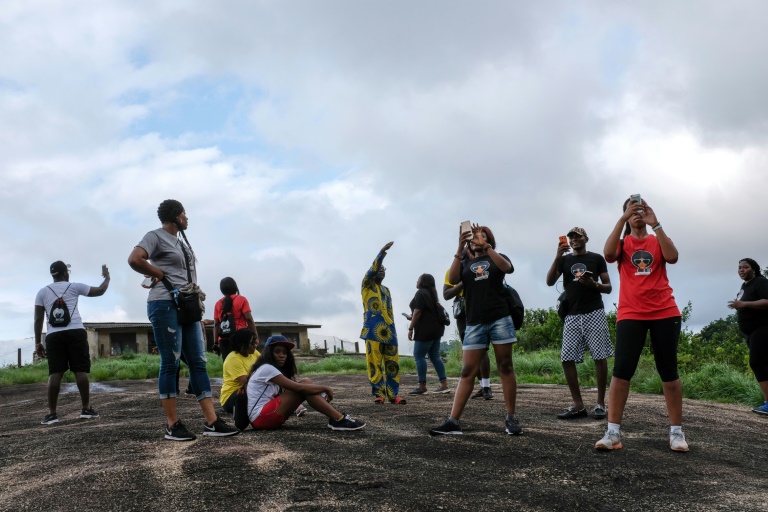 "J'ai toujours voulu avoir une photo avec Chiamaka! Après toutes celles qu'on a vues sur sa page...", souffle une participante, alors que l'organisatrice brandit son téléphone pour prendre un selfie du groupe d'une quinzaine de 20-35 ans, habillés de T-shirts aux couleurs vives à l'effigie de l'agence de voyage Social Prefect Tours.