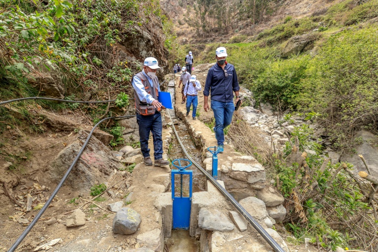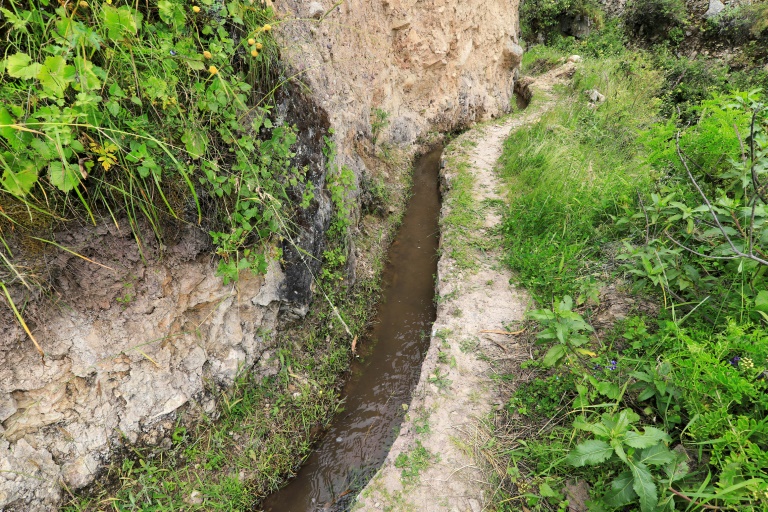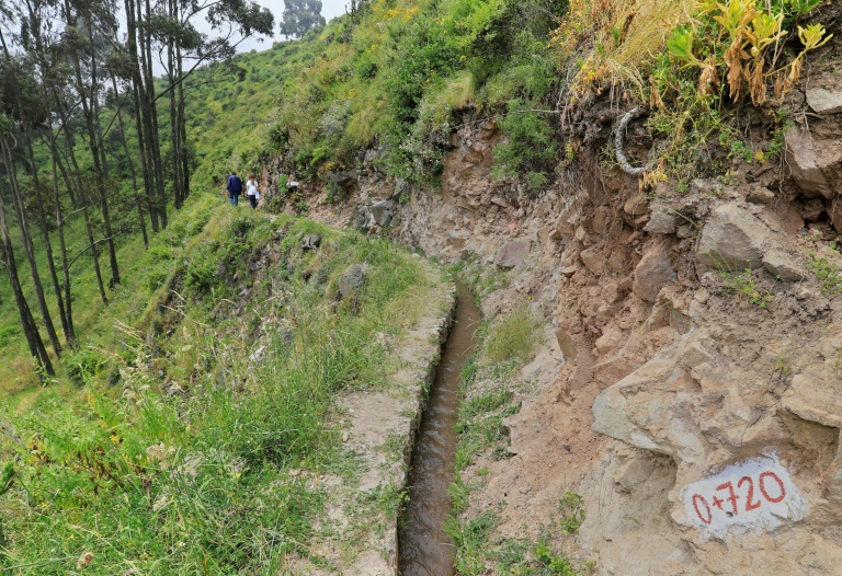 Cette rigole longue de 917 mètres a été restaurée en 2020. Elle est accessible à pied après une marche de sept kilomètres depuis le village. Au total, 17 kilomètres d'amunas ont déjà été remises en service dans la région. Elles recueillent suffisamment d'eau pour alimenter "environ 82.000 personnes pendant un an", explique à l'AFP Mariella Sanchez Guerra, directrice exécutive d'Aquafondo.