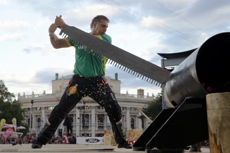 En à peine plus d'une minute, ils découpent du bois à la hache, à la tronçonneuse et à la scie: 16 athlètes se sont affrontés ce week-end à Vienne pour le titre de champion d'une discipline atypique, le bûcheronnage sportif.
