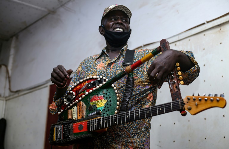 Noureddine Jaber gratte quelques notes avant que ses musiciens ne se lancent dans les mélodies rythmées de l'est soudanais: avec son "tambo-guitare", une lyre africaine raccordée à un manche de guitare électrique, il entend briser la marginalisation de son peuple, les Beja.