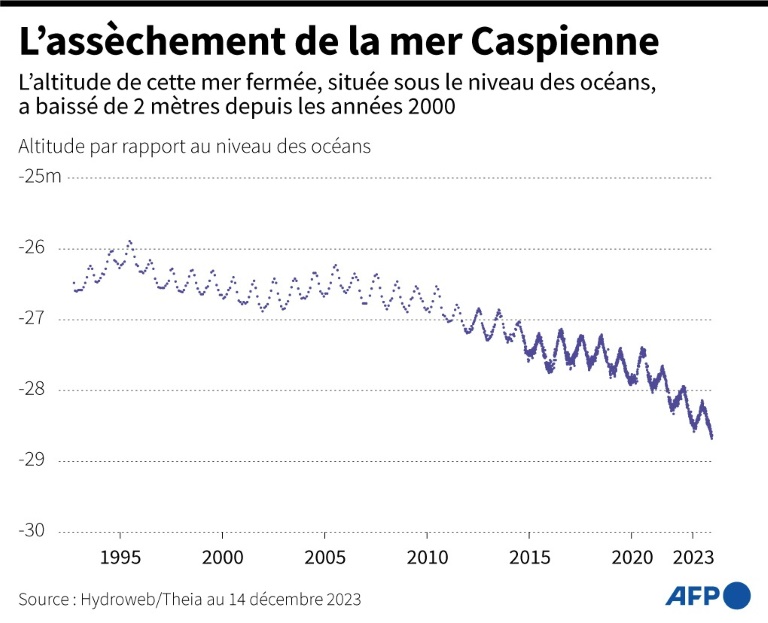"Mais il existe aussi des raisons climatiques : le niveau de la mer dépend du débit des fleuves, dont le niveau diminue, ainsi que de faibles précipitations et d'une évaporation intense", poursuit M. Mouradov pour l'AFP.