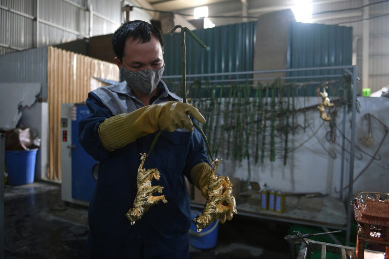 L'année du tigre est censée apporter puissance et prospérité, et les artisans qui confectionnent les objets précieux tentent de refléter cela dans leur travail. "Le tigre dans mon modÚle ne montre pas seulement la férocité de l'animal, mais aussi la puissance, l'objectif d'aller de l'avant et de conquérir", explique à l'AFP l'artisan Vu Dung à propos de son tigre aux ailes d'aigle.