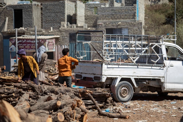 Devenus bûcherons sur le tard, Hussein Abdelqaoui et ses collègues amassent des tronçons d'arbres tout juste abattus dans une forêt puis les jettent à l'arrière d'une camionnette en périphérie de Taëz, une ville du sud assiégée par les Houthis mais encore contrôlée par le gouvernement, appuyé par l'Arabie saoudite voisine.
