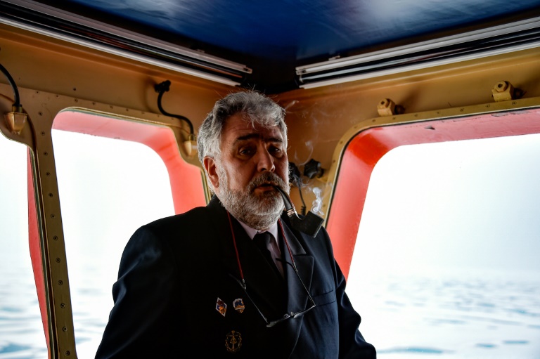 Le capitaine de 57 ans, qui alterne quatre mois en mer et à terre, est un amoureux de cette banquise que son immense brise-glace rouge et noir transperce.