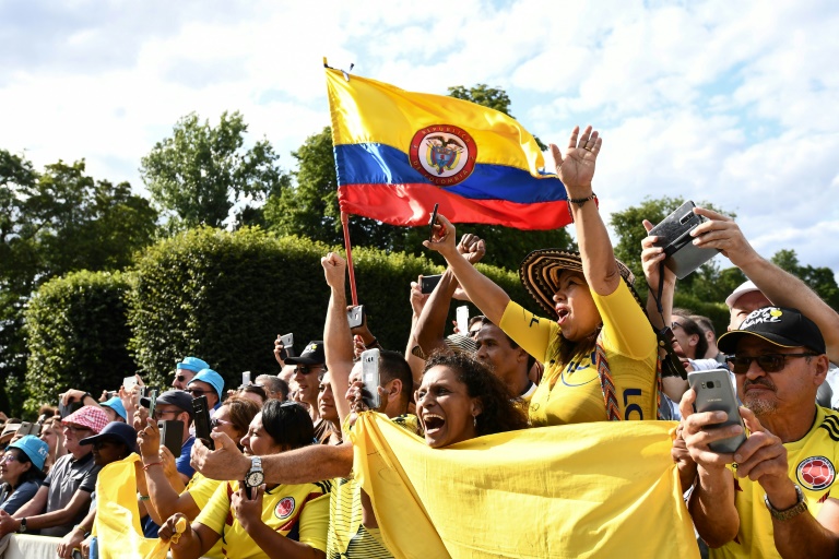 Un peu plus loin, des compatriotes, Luis Velez, sa femme Claudia et leurs enfants Sebastian et Isabella, ont revêtu le T-Shirt jaune de la Colombie. Ils sont aussi "très fiers". Même si, reconnaît Luis, les Français ont été "plutôt bons, mais sont tombés à la dernière minute".