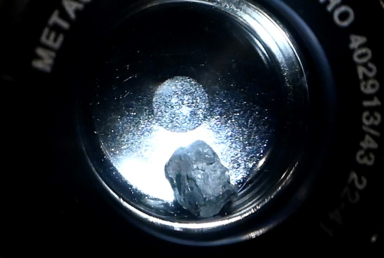 Exposé au public vendredi pour la première fois, au Musée national d'histoire naturelle de la prestigieuse institution Smithsonian, et issu du plus gros échantillon d'astéroïde jamais collecté, le petit fragment de la taille d'un gravillon est tout juste visible dans sa petite capsule.