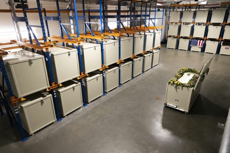 "C'est comme si ces personnes nous apprenaient à mieux mourir", affirme le patron-fondateur de Return Home, Micah Truman, lors d'une visite d'une vaste salle emplie de rangées de grands contenants métalliques, qualifiés de "réceptacles".