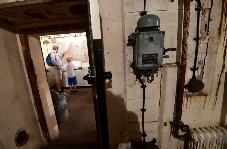 Un téléphone d'époque, un panneau en allemand prévenant les troupes que "l'ennemi est à l'écoute", la fraîcheur humide des lieux et le confinement ambiant font opérer un saut dans le temps de près de 75 ans.