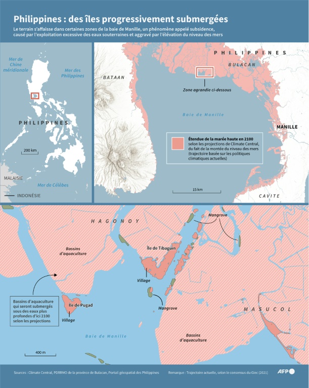 L'affaissement du terrain, connu sous le nom de subsidence, est un phénomène "alarmant" causé par l'exploitation excessive des eaux souterraines, et aggravé par l'élévation du niveau de la mer induit par le réchauffement climatique, explique M. Lagmay.
