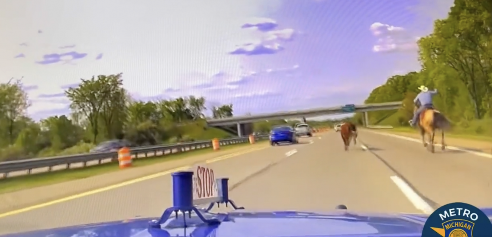 C'est une scène tout droit sortie d’un western qu'on pu voir les automobilistes d'une autoroute dans le Michigan. Alors qu'une vache s’est retrouvée sur l’autoroute, les policiers ont fait appel à un cowboy muni d’un lasso afin de capturer l’animal.