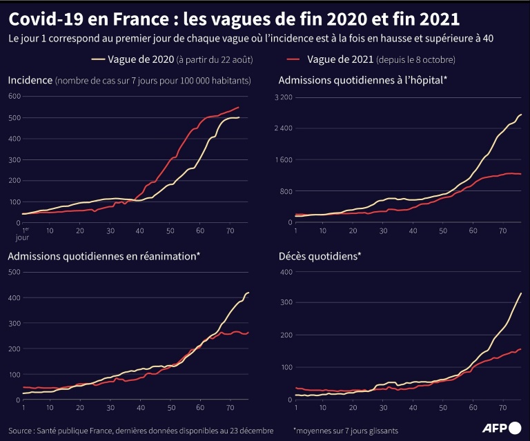 La menace de la déferlante Omicron pesait sur la France à la veille du réveillon de Noël, entre ruée sur les tests et craintes des conséquences de ce nouveau pic épidémique, notamment sur le fonctionnement même du pays.
