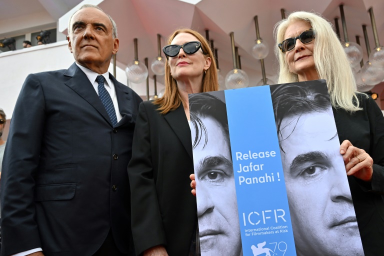 Lion d'or en 2000 avec "Le Cercle", Panahi est le seul cinéaste en compétition à n'avoir pas pu fouler le tapis rouge, emprisonné depuis juillet par le régime des mollahs. Dans "No Bears" ("Les Ours n'existent pas"), le film primé, il met en abyme sa propre situation, un pied de nez brillant à la censure.