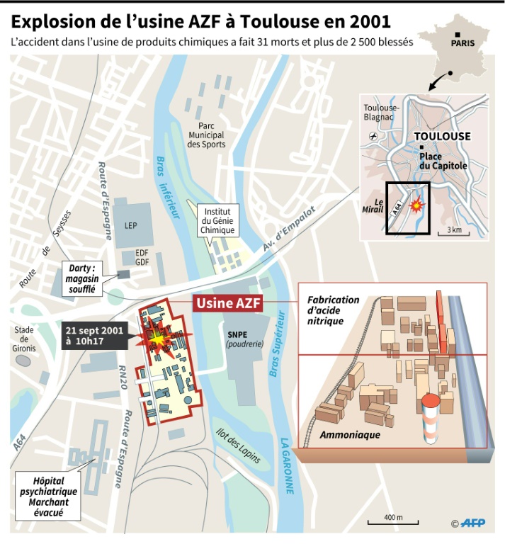 Un premier procès, en 2009 à Toulouse, avait relaxé "au bénéfice du doute" Serge Biechlin, le directeur du site, et Grande Paroisse. Mais en septembre 2012, la Cour d'appel de Toulouse condamne Serge Biechlin à trois ans de prison, dont un ferme, et 45.000 euros d'amende, et Grande Paroisse à 225.000 euros d'amende.