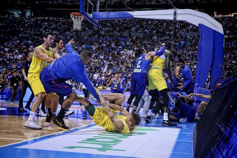 A l'origine de ces scènes surréalistes: un coup de coude d'un joueur philippin sur un adversaire australien. Les arbitres ont finalement pu reprendre la situation en main après l'exclusion de 13 joueurs, neuf Philippins et quatre Australiens. Le match n'a pu aller à son terme. L'Australie a été déclaré vainqueur par défaut (89-53).