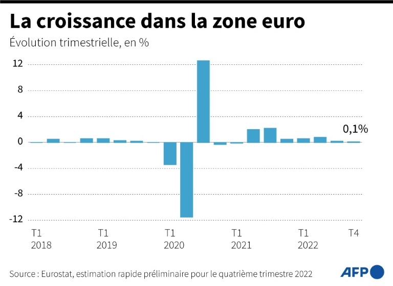 La BCE aura moins de scrupule à serrer davantage la vis monétaire car la zone euro devrait échapper à une récession cet hiver, grâce à une légère croissance du PIB (+0,1%) au quatrième trimestre de 2022, selon Eurostat.