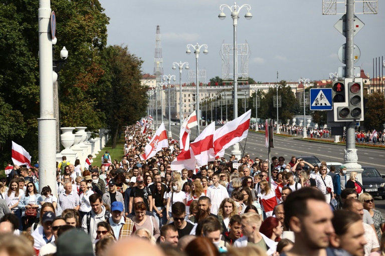 Des dizaines de milliers de manifestants dénonçant le pouvoir du président bélarusse Alexandre Loukachenko sont descendus dans les rues de Minsk à l'appel de l'opposition pour le troisième dimanche consécutif, selon des estimations de l'AFP et de médias locaux.