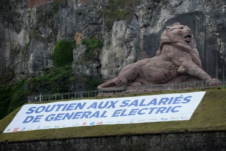Les protestataires étaient nombreux à être venus en famille, tandis que certains commerces avaient baissé leurs rideaux par solidarité. Une immense banderole "Soutien aux salariés de General Electric" s'étalait aussi aux pieds du lion en grès rose de Belfort, sculpté par Bartholdi, aussi indissociable de la cité franc-comtoise que son industrie.