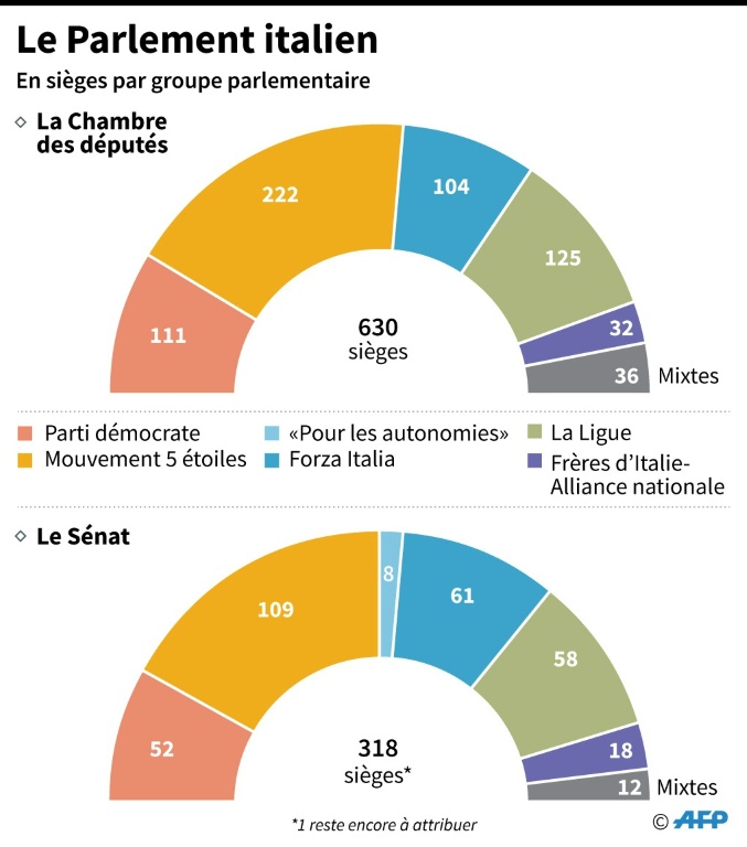 Ensemble, les deux formations disposent d'une majorité de 7 voix au Sénat et de 32 voix à la Chambre des députés, et pourraient bénéficier au coup par coup du soutien actif ou au moins d'une abstention bienveillante des partenaires de la coalition de droite, dont Forza Italia.