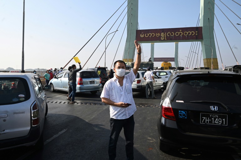Des contestataires ont appelé à se rassembler près de la célèbre pagode Sule dans le centre de la capitale économique. "Réunissons des millions (de Birmans) pour demander la libération d'Aung San Suu Kyi", assignée à résidence à Naypyidaw, la capitale administrative, ont-ils lancé. Les habitants, à pied ou sur des deux-roues, étaient déjà nombreux dans les rues en milieu de matinée, arborant des pancartes: "Combat pour la démocratie", "rejetez le coup d'Etat".
