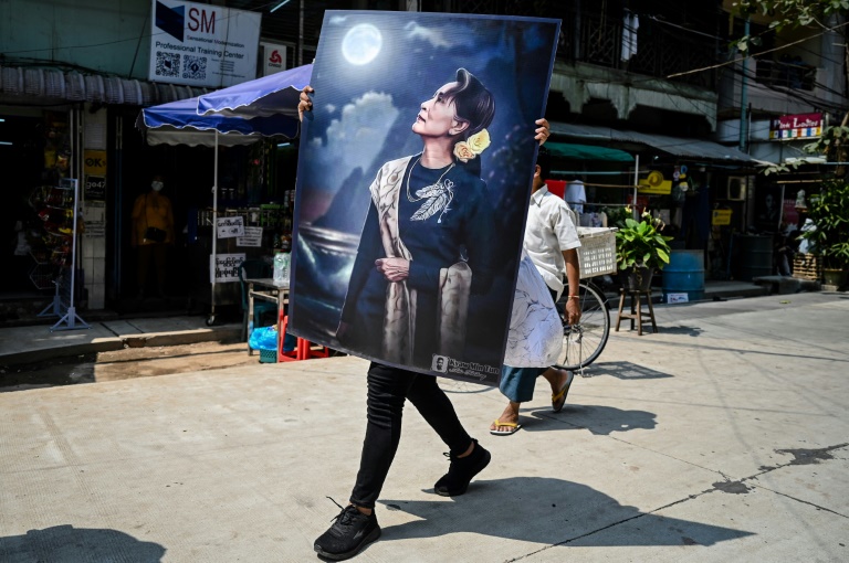 Les protestataires réclament l'abolition de la Constitution très favorable aux militaires, le retour du gouvernement civil et la libération des détenus, dont Aung San Suu Kyi, 75 ans.