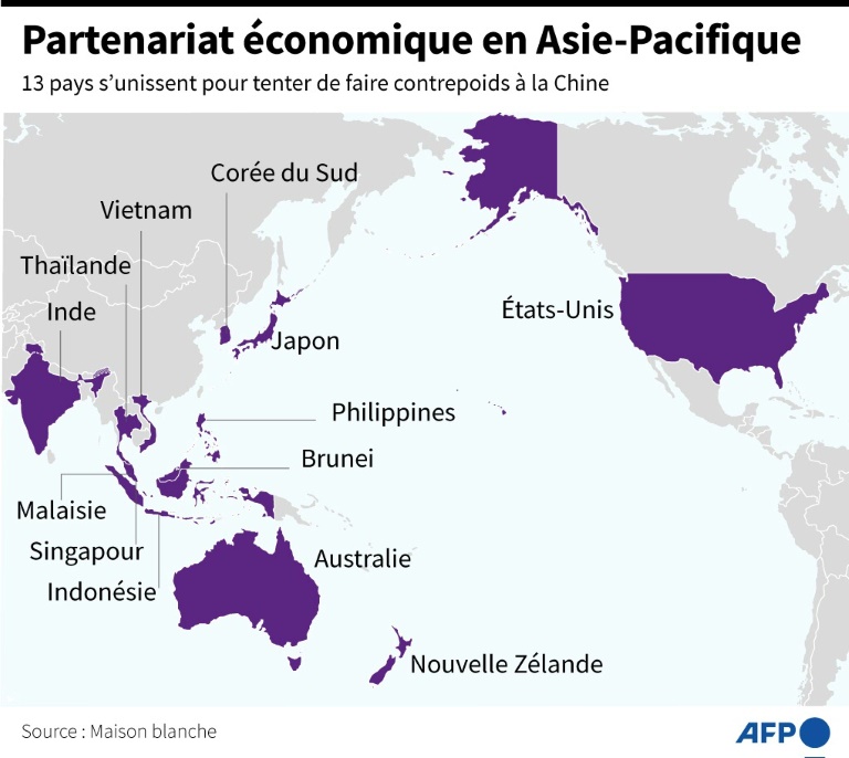 Le président Biden a tenté d'unir ses alliés face à la Chine et a annoncé lundi à Tokyo le lancement d'un nouveau partenariat économique en Asie-Pacifique pour faire contrepoids à Pékin.