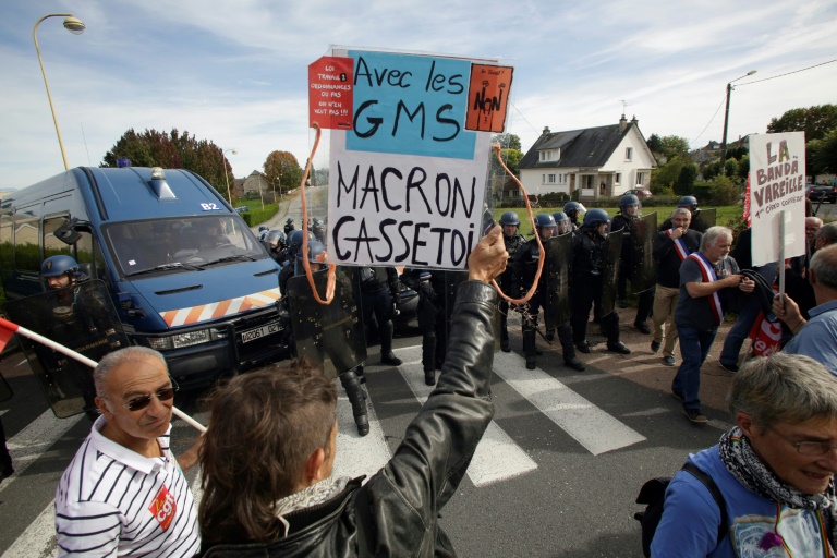 Le déplacement avait été perturbé plus tôt par un rassemblement de salariés et ex-employés licenciés de l'équipementier automobile GM&S, qui se sont heurtés aux forces de l'ordre. "Après +les gens qui ne sont rien+ et +les fainéants+, E. Macron récidive avec +y?en a certains qui au lieu de foutre le bordel?+", a tweeté le Parti socialiste, en appelant "le président de la République à rester maître de son langage et à respecter les Français".