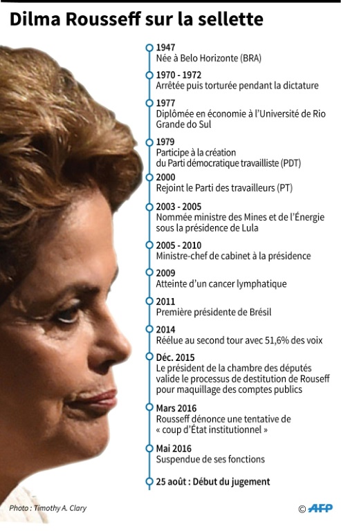 Depuis des mois, celle qui avait été la première femme élue à la tête du Brésil en 2010 clame son innocence et crie au "coup d'Etat" institutionnel ourdi par le principal bénéficiaire de la man?uvre: son ancien vice-président devenu rival, Michel Temer (PMDB, centre droit), 75 ans.