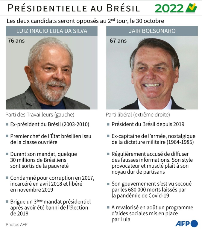 Lula a obtenu 48,3% des voix au premier tour, contre 43,2% pour le président d'extrême droite.