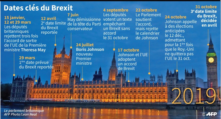 Les derniers sondages donnent un avantage aux conservateurs sur les travaillistes en cas de législatives anticipées mais la situation politique est devenue très volatile trois ans après le choc du référendum sur le Brexit. L'accord trouvé par l'UE et Johnson règle les conditions du divorce après 46 ans de vie commune et permet une sortie négociée assortie d'une période de transition courant au moins jusqu'à fin 2020.