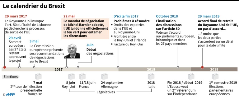 Le Royaume-Uni est supposé quitter l'Union européenne fin mars 2019, soit deux ans après le lancement officiel de la procédure de sortie par Mme May, le 29 mars de cette année.