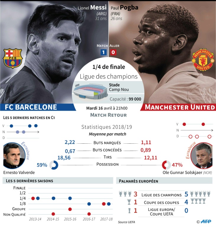 Un pronostic que le Barça a le devoir de confirmer mardi au Camp Nou pour atteindre sa première demi-finale depuis 2015 et effacer trois échecs consécutifs en quarts. Sans excès de confiance: après avoir infligé une "remontada" au PSG en 2017 (0-4, 6-1), puis en avoir subi une l'an dernier à Rome (4-1, 0-3), les Catalans sont bien placés pour se méfier de Manchester United et de sa star française Paul Pogba. Et la pérennité de l'empire espagnol est en jeu.