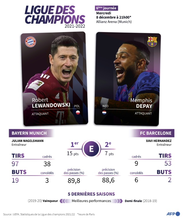 Le FC Barcelone est condamné à l'exploit sur le terrain du Bayern Munich mercredi pour être certain de s'épargner l'humiliation d'une rarissime élimination dès les phases de poules de Ligue des champions, tandis que Lille a les cartes en mains pour se qualifier en huitièmes.