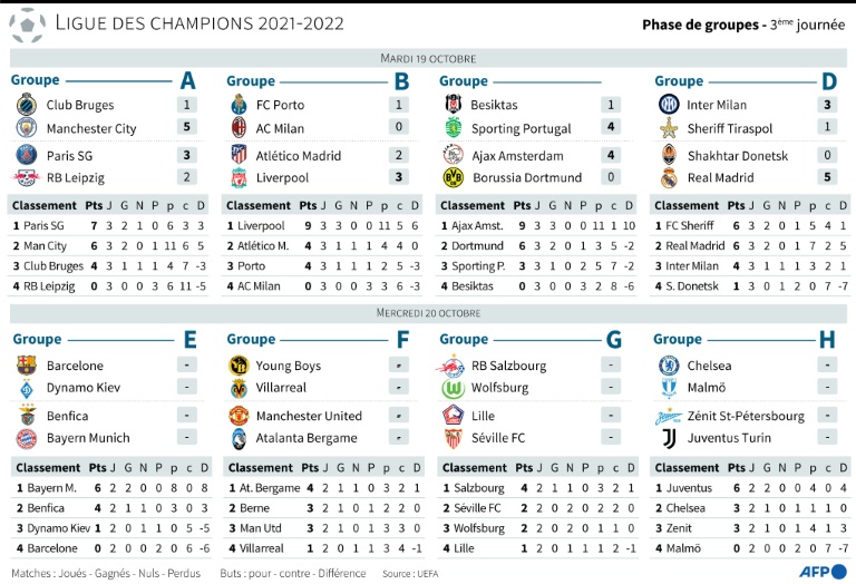 Dans l'autre rencontre du groupe, Manchester City a rebondi après sa sortie de route au Parc des Princes fin septembre (2-0): les Citizens (6 pts) n'ont pas fait de détail sur la pelouse du Club Bruges (5-1) et talonnent Paris en tête du groupe.