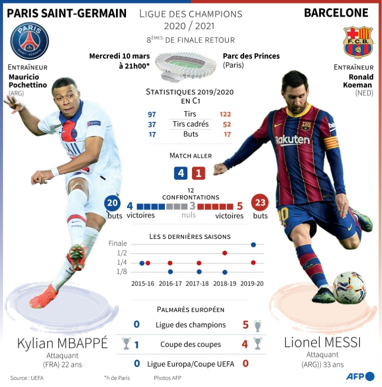 Pourtant, ce soir-là , le PSG a battu Brest (3-0) en Coupe de France, en livrant une performance maîtrisée qui incite plutôt à l'optimisme. En Catalogne, le latéral Jordi Alba a admis de son côté qu'un renversement de situation s'annonçait "très compliqué". Il est vrai qu'aucune équipe ne s'est qualifiée en C1 après avoir perdu à domicile la manche aller par trois buts d'écart. "Il faudra être efficace, réaliste, mais on va essayer !", a promis le technicien blaugrana Ronald Koeman.