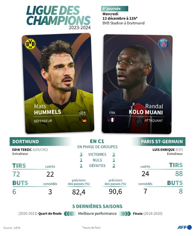 Le Paris Saint-Germain et Kylian Mbappé doivent éviter le pire mercredi (21h00) dans l'ambiance bouillonnante de Dortmund et se qualifier pour les huitièmes de finale de Ligue des champions afin d'éloigner la crise que provoquerait une élimination si précoce.