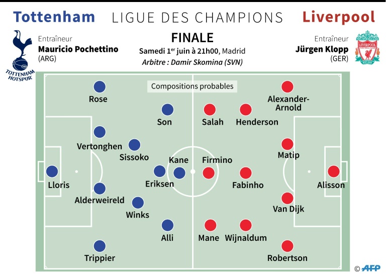 Dans un Metropolitano bouillant et assourdissant, l'habituelle intensité physique de la Premier League promet du grand spectacle entre les "Reds" de l'Egyptien Mohamed Salah et les "Spurs" de l'Anglais Harry Kane, incertain avant la rencontre. Quant à la ferveur des chants anglais, elle risque de donner la chair de poule... à condition de supporter la canicule sévissant à Madrid.